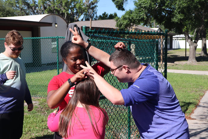 Another important aspect of socialization involves communication. Each client’s communication skills varies in level and our team works to not only meet them where they are at, but to provide them with the tools and practice to further develop and grow these skills as an individual and with their peers. Communication is practiced in several various real life opportunities such as group reading sessions, writing practice, safe interactions with community members at grocery stores and while on group trips, practicing how to set boundaries and advocating for oneself.